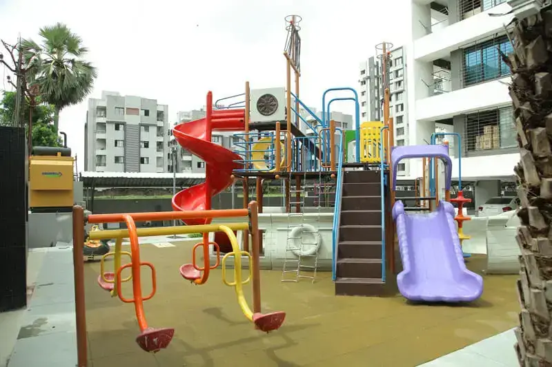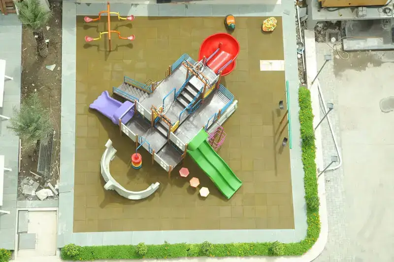 Playful children play area with outdoor play facility