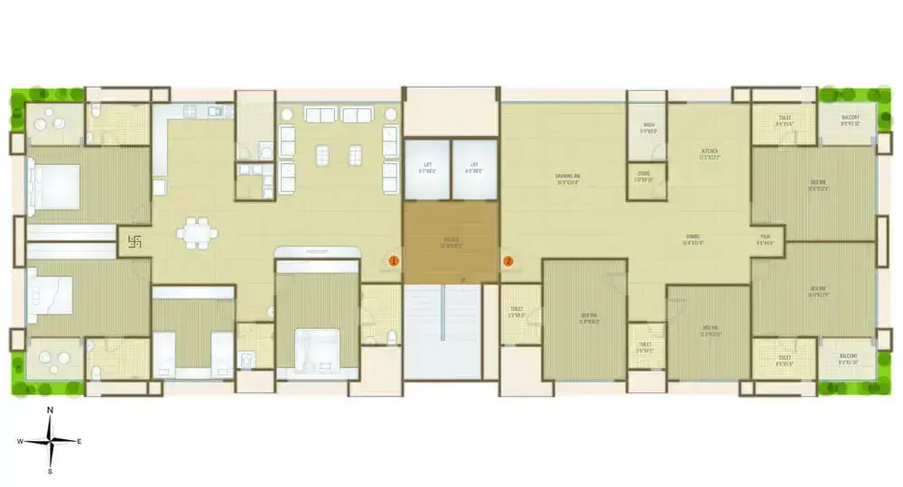 Three side open 2 flats on each floor. Floor height: 11 feet.