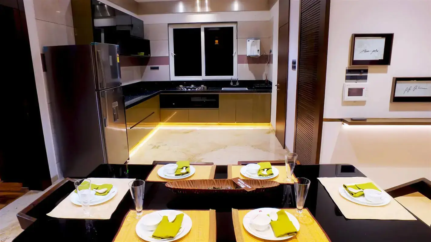 • Italian marble in Living room, Dining & Kitchen. Large size granamite in all Bedroom.